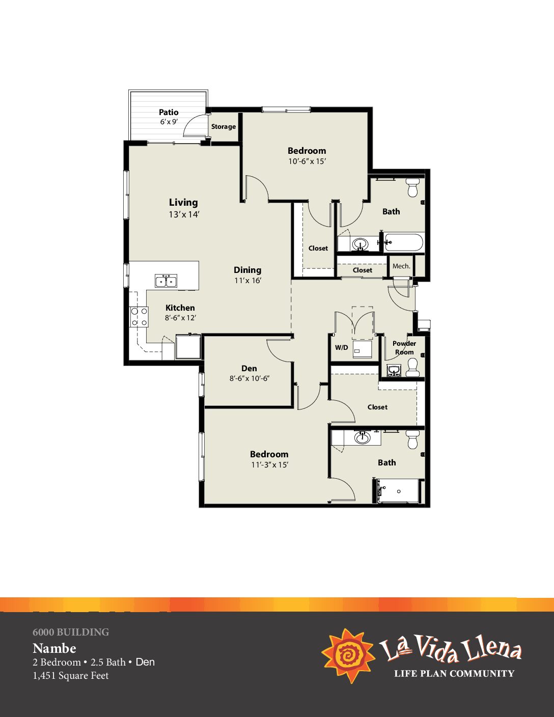 2 Bedroom / 2.5 Bath + Den